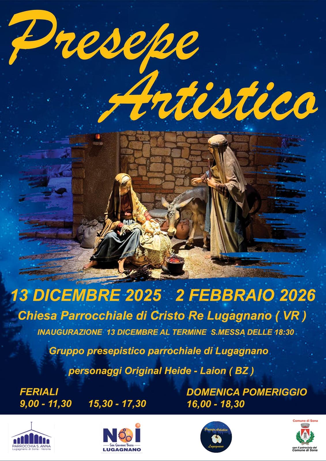 Il Presepe Artistico sarà visitabile presso la Chiesa Parrocchiale di Cristo Re a Lugagnano (VR) fino al 2 febbraio 2026, osservando i seguenti orari: